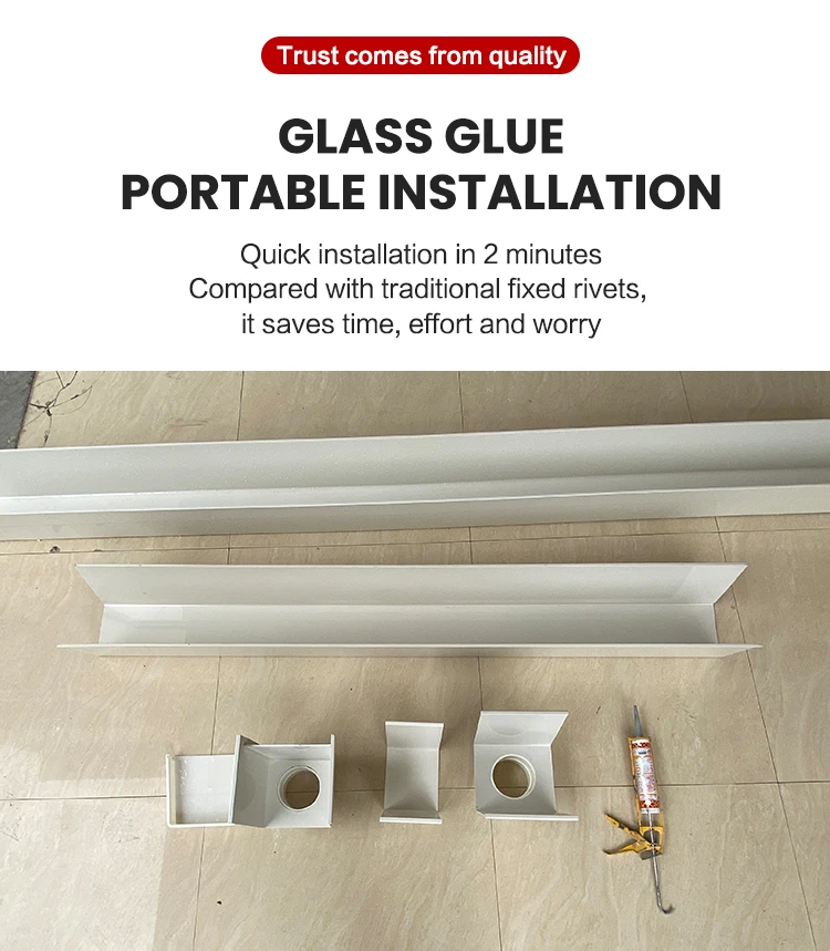3. Do not open holes in any part of the rain gutter for drainage withoutauthorization. This will affect the service life of the rain gutter, andspecial drainage fittings and water pipes are required to connect tothe downpipe.
