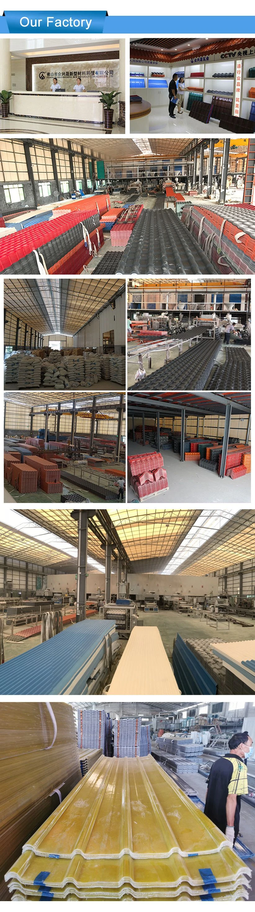 • The tests prove that: in suffering heavy rain, high winds the impact of outside noise, ZhongXingCheng plastic roof tiles sheets roofing sheet has a good absorption of the noise effect,noise down 30dB than color steel tile.